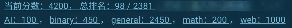 但最后我拿到了 4200 分,总排名 98 / 2381 是我完全没想到的(x