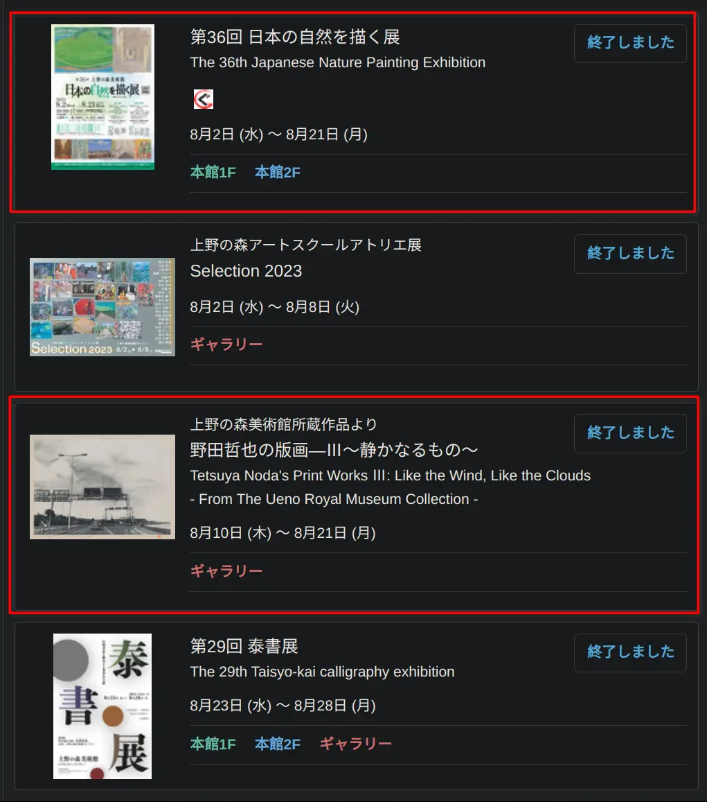 但在这步之后我锁定的地方错了,因为通过检索,我了解到了 上野の森美術館(上野之森美术馆, The Ueno Royal Museum) 位于 上野恩賜公園,里面也有符合对应时间段的展览 日本の自然を描く展 以及 野田哲也の版画―Ⅲ~静かなるもの~,锁定在这里面已经是有一两天的时间了,但我费尽九牛二虎之力也没法找到对应的志愿者招募信息,于是放弃锁定 上野の森美術館。