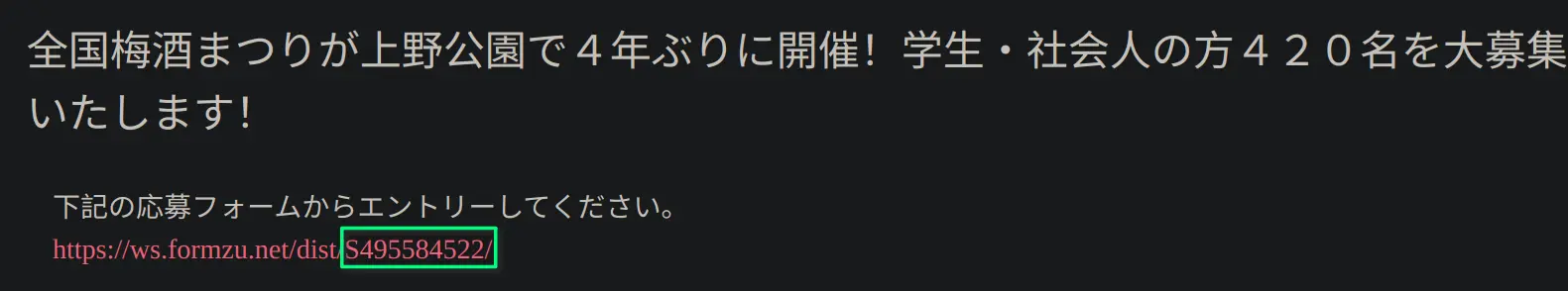 根据网站的链接找到了其 官网,经过内容阅读,可以发现网页底部有志愿者招募(ボランティアSTAFF募集)信息链接,里面也有问题所需的问卷调查编号 S495584522。