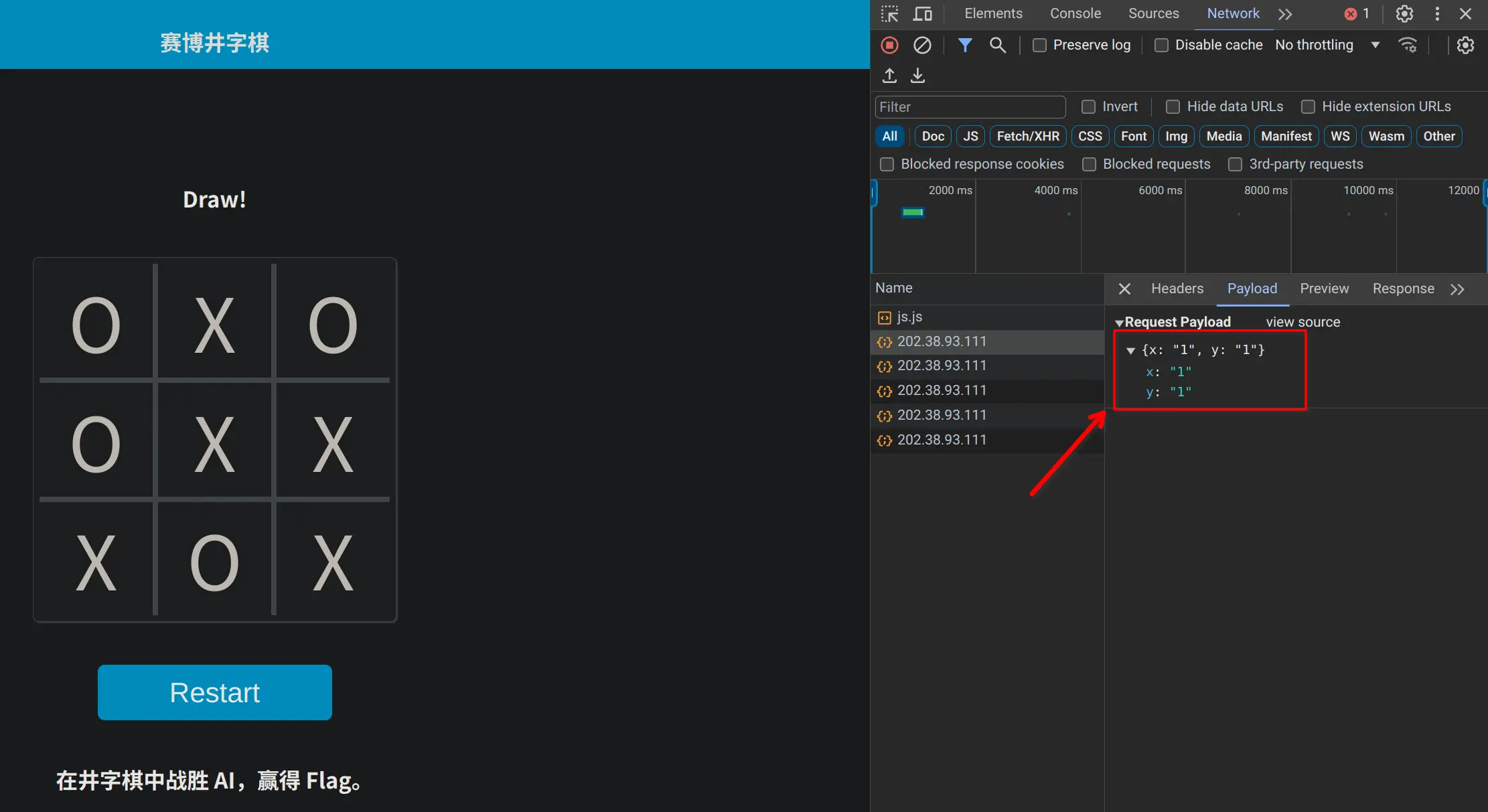 在这题不难通过调试发现“下棋”的过程是通过 POST 方法实现的。